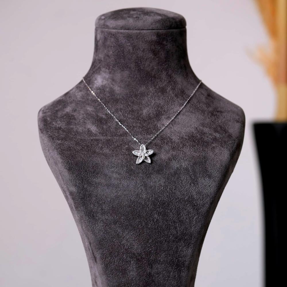 سلسال (النجمة) من SNOW SILVER هي قلادة متميزة ذات رونق فريد من نوعة ، مصنوعة من الفضة عيار 925 ذات صياغة مذهلة تتضمن ضمان لمدة سنة كاملة عند تغير لونها